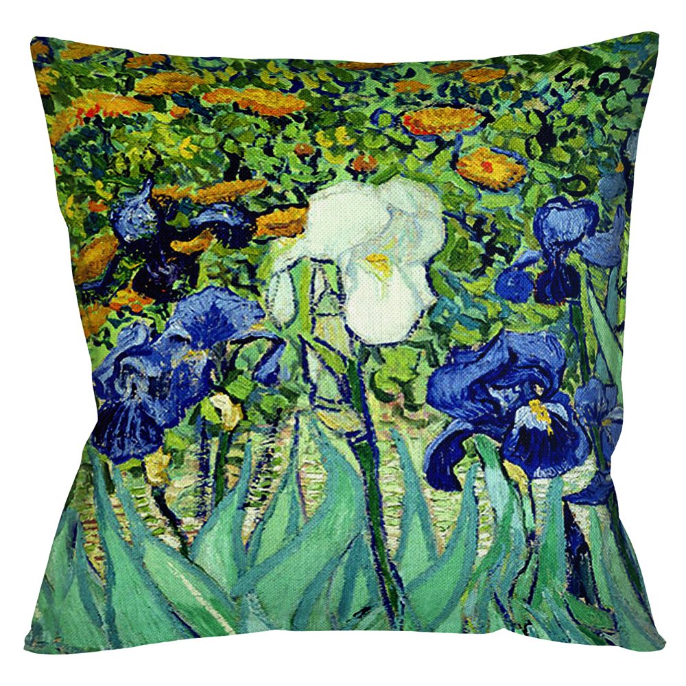Подушка «Ирисы» раскрашена солнечным пейзажем Винсента Ван Гога, написанным в 1889 году и ставшим самым дорогим произведением в аукционном рейтинге 1987-89 годов. Гармония и безмятежность этого пейзажа станут желанной находкой для любого интерьера.